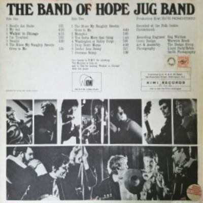 The group recorded two albums at The Christchurch Folk Centre. Other Performers included Val Murphy (Vocals) and Timothy Halzledine (Piano). Local gigs for the group included The Plainsman, Stage Door, Ram Jam, High Street Folk Centre, El Segundo, Friendship House and The University of Canterbury Arts Festival (1967). |