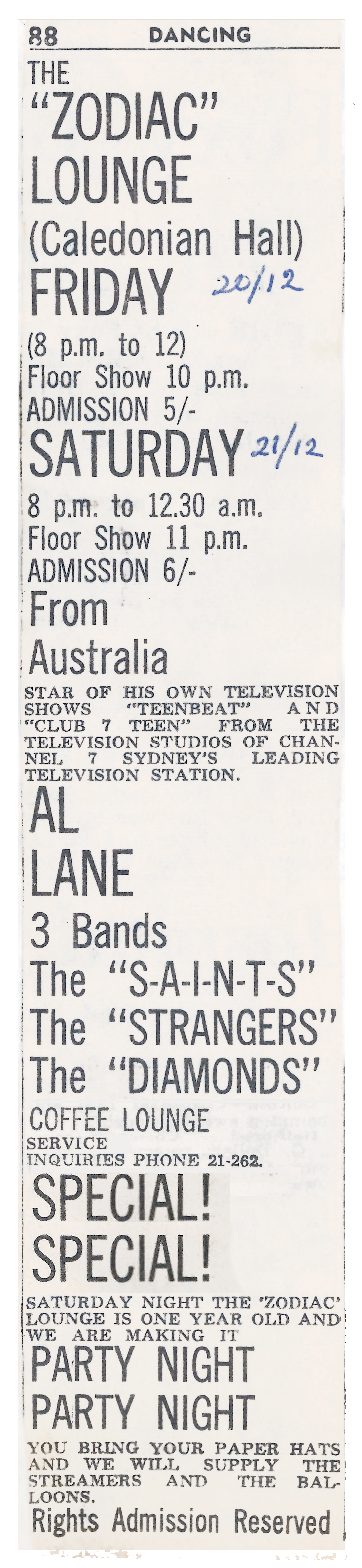 Bart Ball — promoter of The Zodiac Lounge (seen here with Gary Jones of The Saints) |