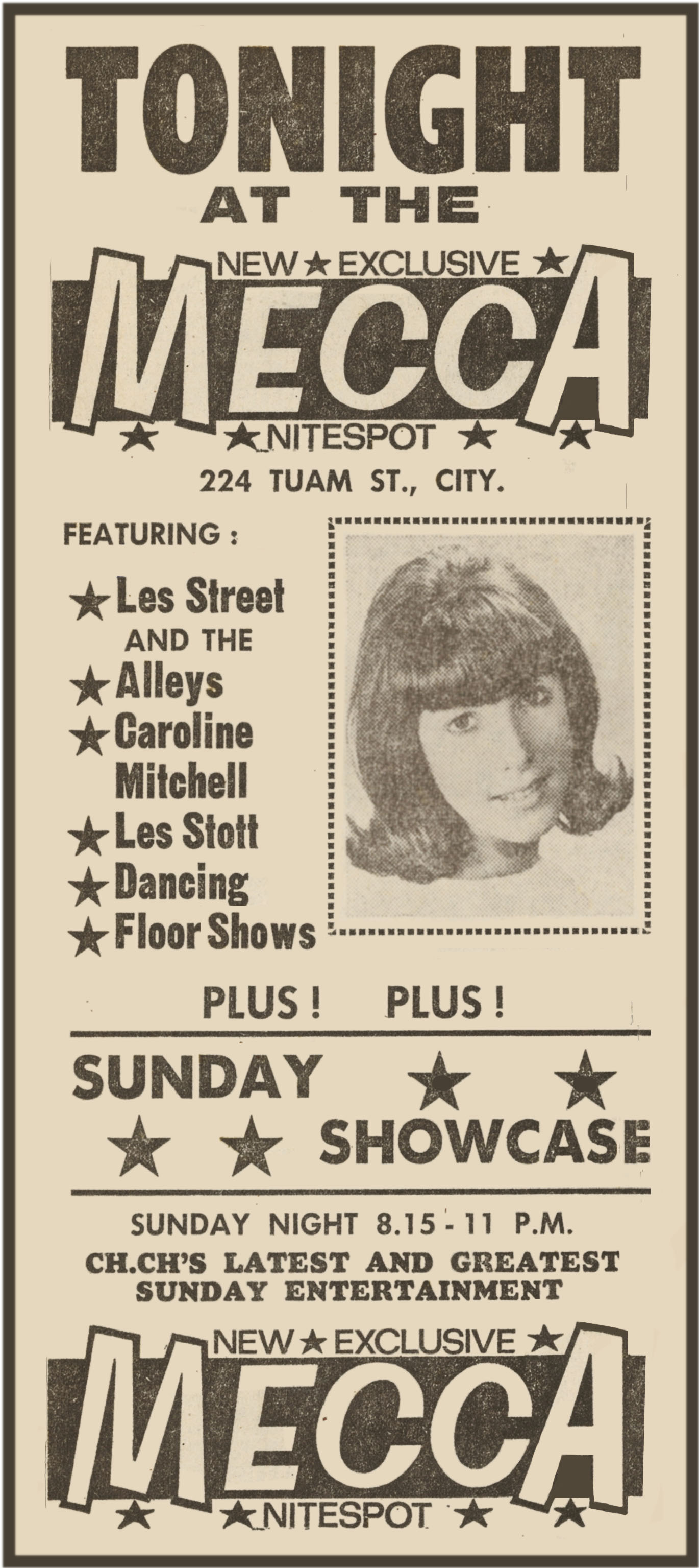 ![]() Caroline Mitchell with The Satellites - last night of the Zodiac Lounge Sat March 6th, 1965 |