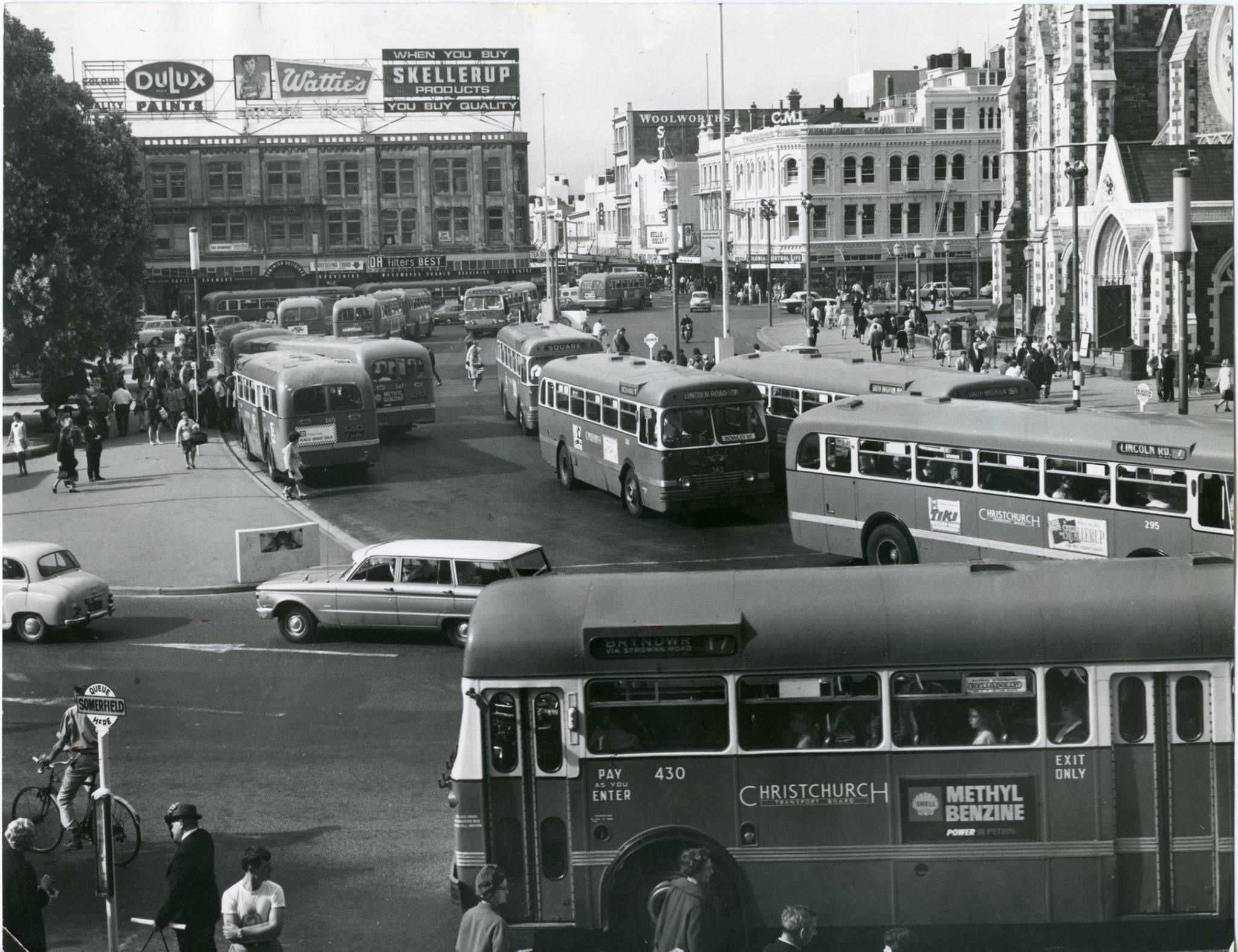 ![]() Christchurch Cathedral Square towards the north, showing busses |