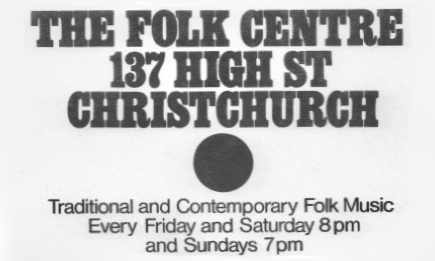 The Christchurch Folk Centre was later renamed The Christchurch Folk Club (which was formed in 1968 and continues to be a successful club hosting a variety of music). |