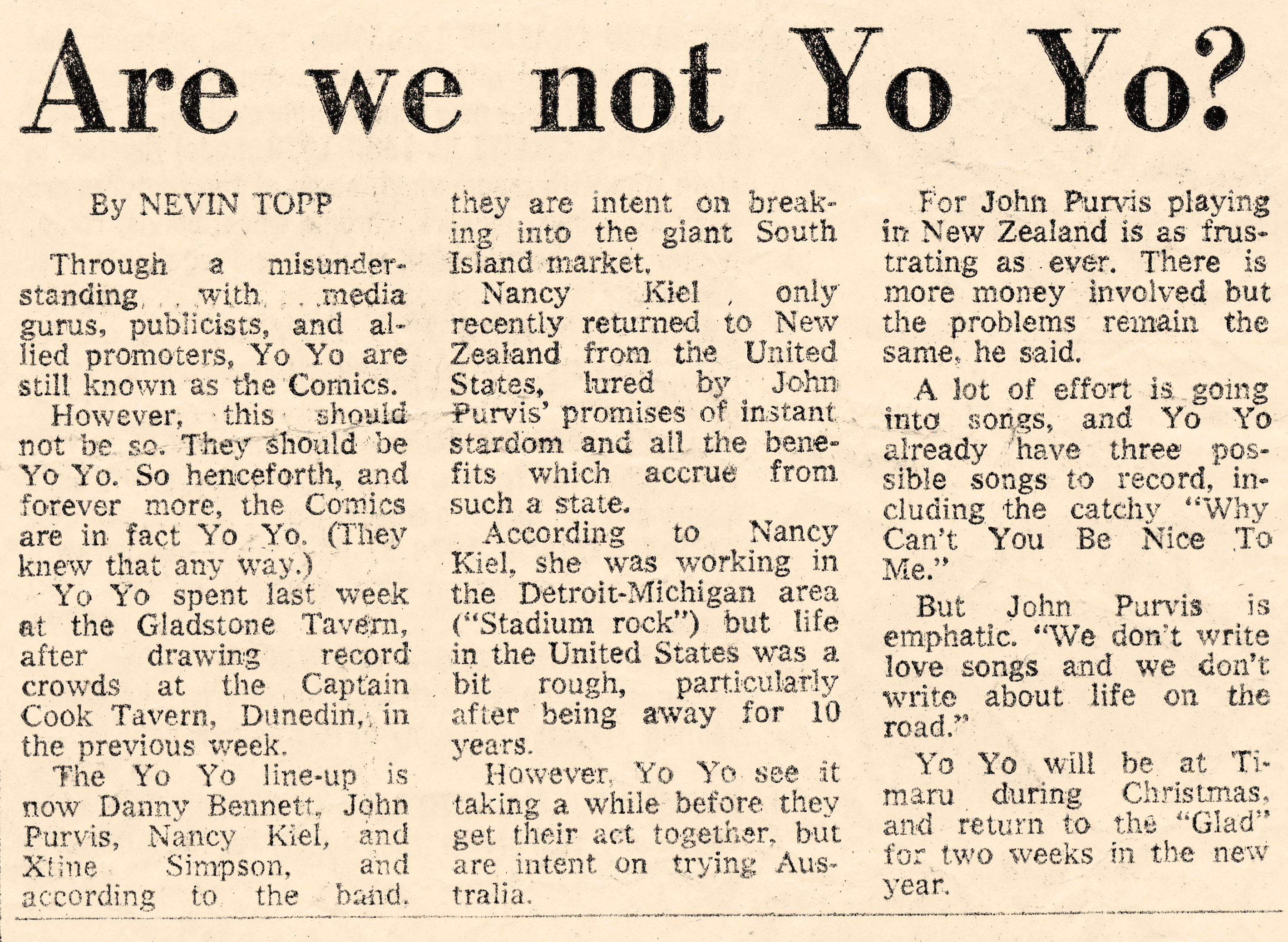 The Comics - appearing at Christchurch's Imperial Hotel Martin Copland (Guitar), Torch Newman (Drums), Ruth Genet (Keyboards) John Purvis (Guitar) , Xtine Simpson (Bass) and Tony Smith (Vocals)