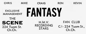 Live in Sydney Australia 1969, this band won a reputation, and a heat in the Hoadleys Battle of the Bands competition 1970. The line-up consisted of John Carrol (Vocals), Mike Cassidy (Drums and Vocals), Ron Harris (Guitar and Vocals) and Michael Brown (Bass). Michael Brown and Ron Harris came to Sydney Australia from New Zealand in early 1970 looking to form the NZ Fantasy Band and were joined by Mike Cassidy (who was the token Aussie in the group) and John Carrol. The band mainly worked residencies at Kings Cross clubs like The Electric Circus, The Groovy Room and The Downunder Club but also played many gigs at other venues across Sydney including supporting bands like Axiom at Caesar's Palace. They also won the Rockdale Heat of Hoadley's Battle of the Bands beating hot favourites Flake. They then proceeded to the NSW Final at the Capitol Theatre which was won by The Flying Circus. |