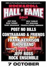 Invercargill music fans WERE in for a treat on the night of Saturday October 17th, 2017, with the 15th iteration of the Southland Rock and Roll Hall of Fame show, which saw the induction of six noted Southland musicians into the Southland Musicians Club Hall of Fame, in front of an Invercargill Workingmen's Club audience of 350. One of those inductees, Frank Kerrison, brought his showband with him from present day home Christchurch, plus a very special guest, well known to younger audiences - his son and Op Shop frontman Jason Kerrison. Southland Musicians Club president Trevor Daley said "We're absolutely rapt to be welcoming yet another panel of top calibre Southland musicians into the Hall of Fame this year, all of our visiting musicians and bands have made their own unique contribution to the Southland music scene down the years, with Frank also bringing with him his son Jason of Op Shop fame, as a special guest performer alongside his showband." |