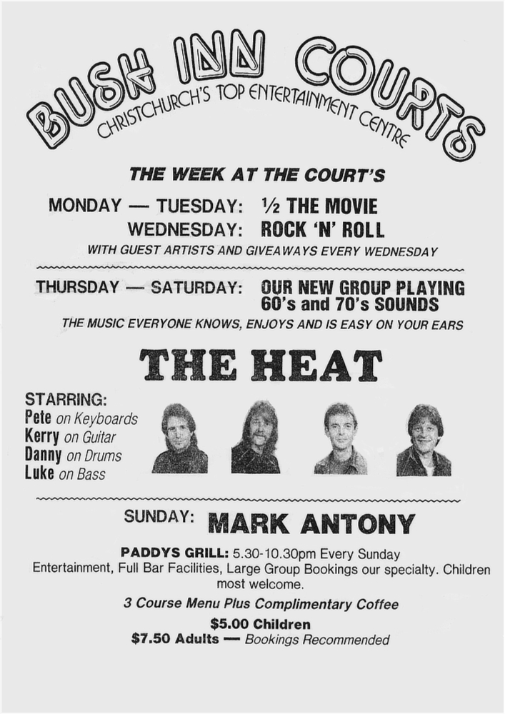Heat - resident at The Bush Inn Courts Peter Gillette (Keyboards), Kerry Church (Guitar), Danny Bennett (Drums) and Luke Neary (Bass)
