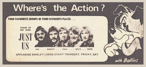 ![]() Just Us — at the Cave Rock Hotel, Sumner, Christchurch circa 1975 |