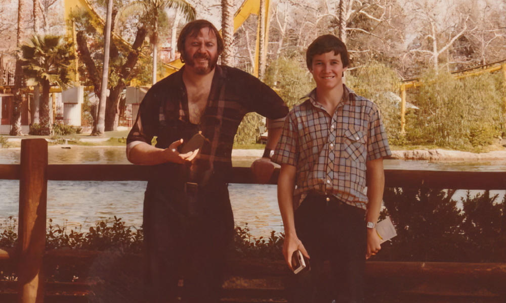 ![]() Larry at Knotts Berry Farm, California (seen with Peter Quinn) |