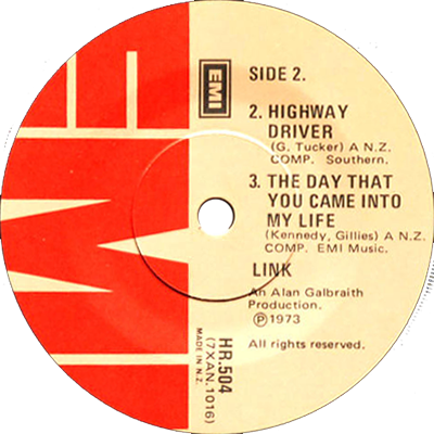 Link appeared from the ashes of the Chapta breakup circa late 1972, and the original line-up featured Neville Claughton on bass guitar. Neville was replaced by Dick Whatson who was subsequently replaced by Bryan Gerrard. Drummers suffered a similar fate with original skin-man Craig Nicholson being replaced by Chris Fox, who later vacated the drumseat in favour of Ron Mahony. Link recorded for HMV, but their legacy was only one single Only Time Will Let Us Know // Highway Driver - The Day You Came Into My Life. The single performed creditably by reaching No. 17 on the national charts in August of 1973, and made it as an entry into the Studio One TV Series that same year. Link was resident at the Blenheim Road Motor Inn. A group of versatility who presented a sound musical programme ranging from standards to R&B |