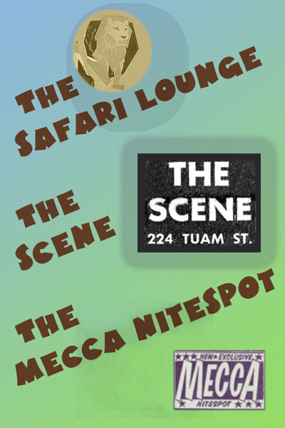 The Safari Lounge, The Scene and The Mecca Nitespot — all utilised the E.W. Pidgeon and Coy Ltd. building situated at 224 Tuam Street, Christchurch. By the time this photograph was taken, the E.W. Pidgeon and Coy Ltd. building had obviously been demolished .....