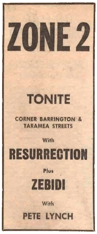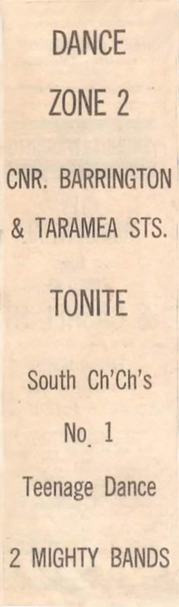 Zone 2 — teenage club/nitespot, RSA Hall, Cnr Barrington and Taramea Streets, Christchurch |