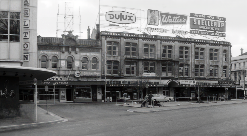 Demolition of the Carlton Cinema began shortly after closure and was completed in 1986 to make way for a new pedestrian shopping complex in Cathedral Square. This event was part of Christchurch's extensive urban redevelopment initiatives in the 1980s, which prioritized modern commercial spaces and infrastructure upgrades over historic entertainment venues, leading to the loss of several landmark buildings in the city center. The site was subsequently redeveloped into retail facilities, transforming the former theatre location into a contemporary urban hub. |
