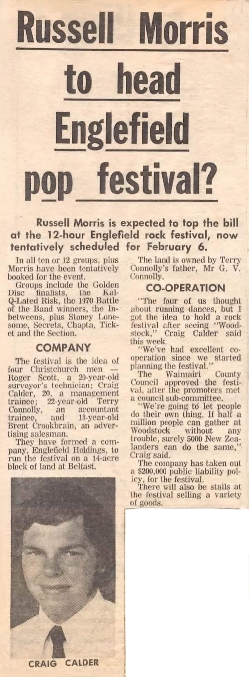 Englefield Rock Festival 1971 — A rock festival held at Belfast (near Christchurch) - thanks to Terry Galavin and Sandy Inglis for images. |
