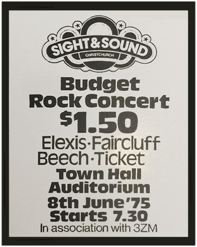 Radio Avon Summer Concert at the Christchurch Town Hall June 1975 — featuring Alexis, Fairclough, Beech and Ticket |